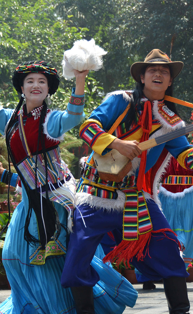 傣族人口約107萬人,主要分布在云南的德宏傣族景頗族自治州、西雙版納傣族自治州及瀾滄江流域的河谷壩子區(qū)域。傣族寨是進(jìn)入民族村的第一個村寨,占地面積27畝,三面環(huán)水,綠樹掩映。一幢幢“干欄式”傣家竹樓,通過蜿延的紅砂石小徑聯(lián)向肅穆的緬寺。巍峨壯觀的白塔,精巧玲瓏的風(fēng)雨橋,以及風(fēng)雨亭、水井、鐘亭等建筑充滿著傣家的濃郁風(fēng)情,是傣寨真實(shí)的民間景觀再現(xiàn)。一年一度的“潑水節(jié)”期間,這里都有活潑歡快的“象腳鼓舞...